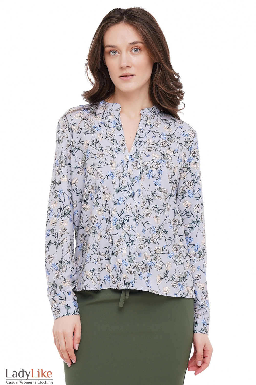 Блузка серая в цветы