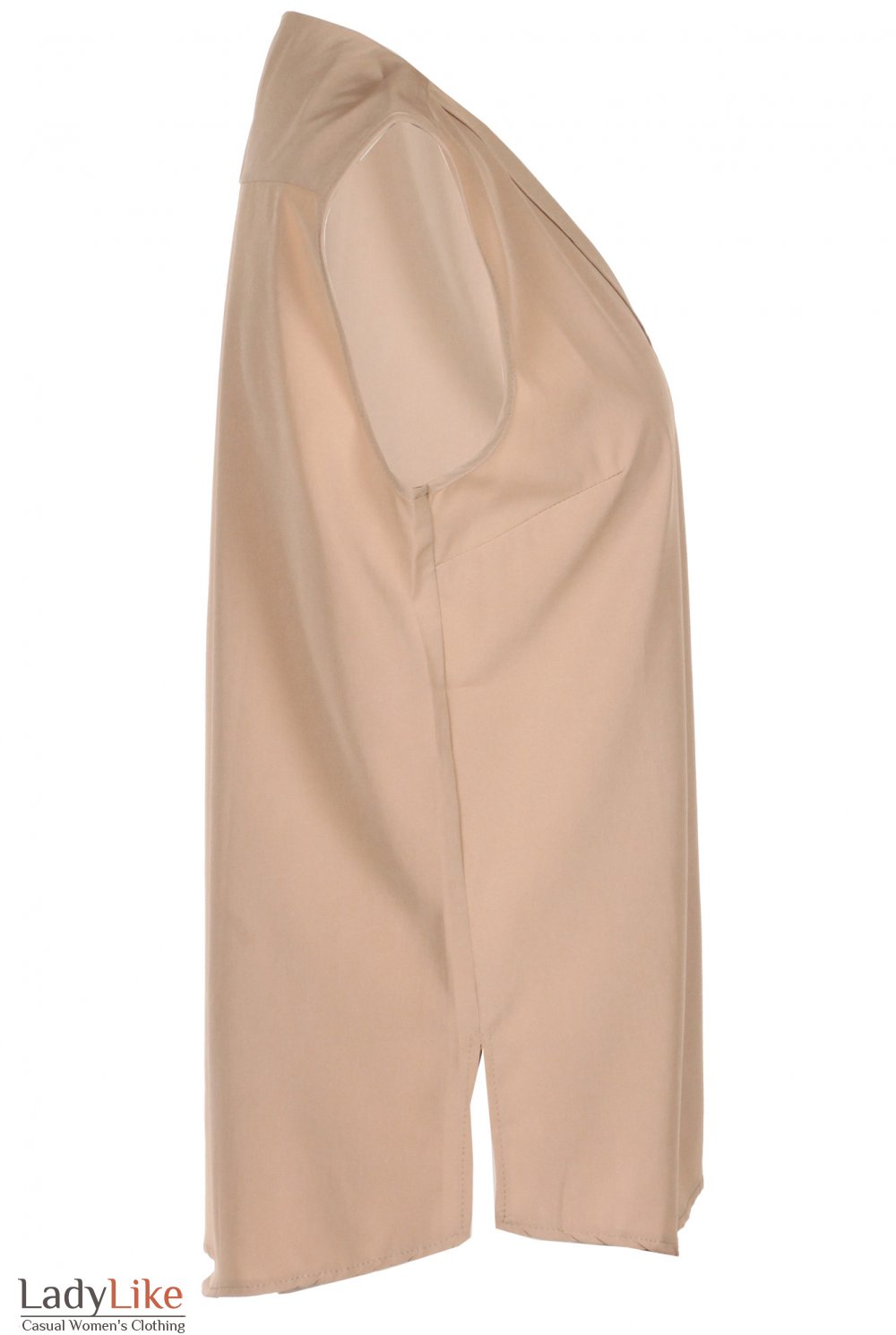 Легкий топ из вискозы. Свободный силуэт. V-образный вырез горловины. По бокам разрезы. Топ прекрасно подходит под жакет, к брюкам и юбкам.