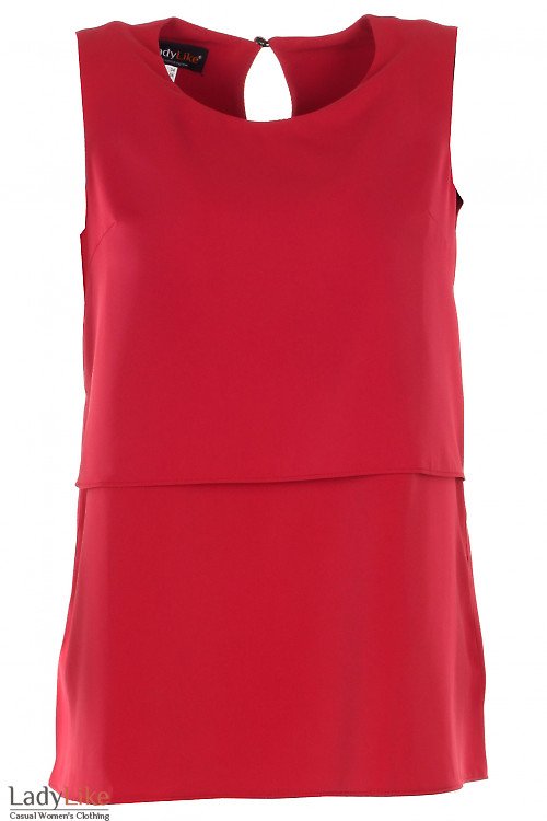 Летний малиновый топ из вискозы. Круглый вырез горловины. Двойной перед. Застежка на пуговицу по спинке.