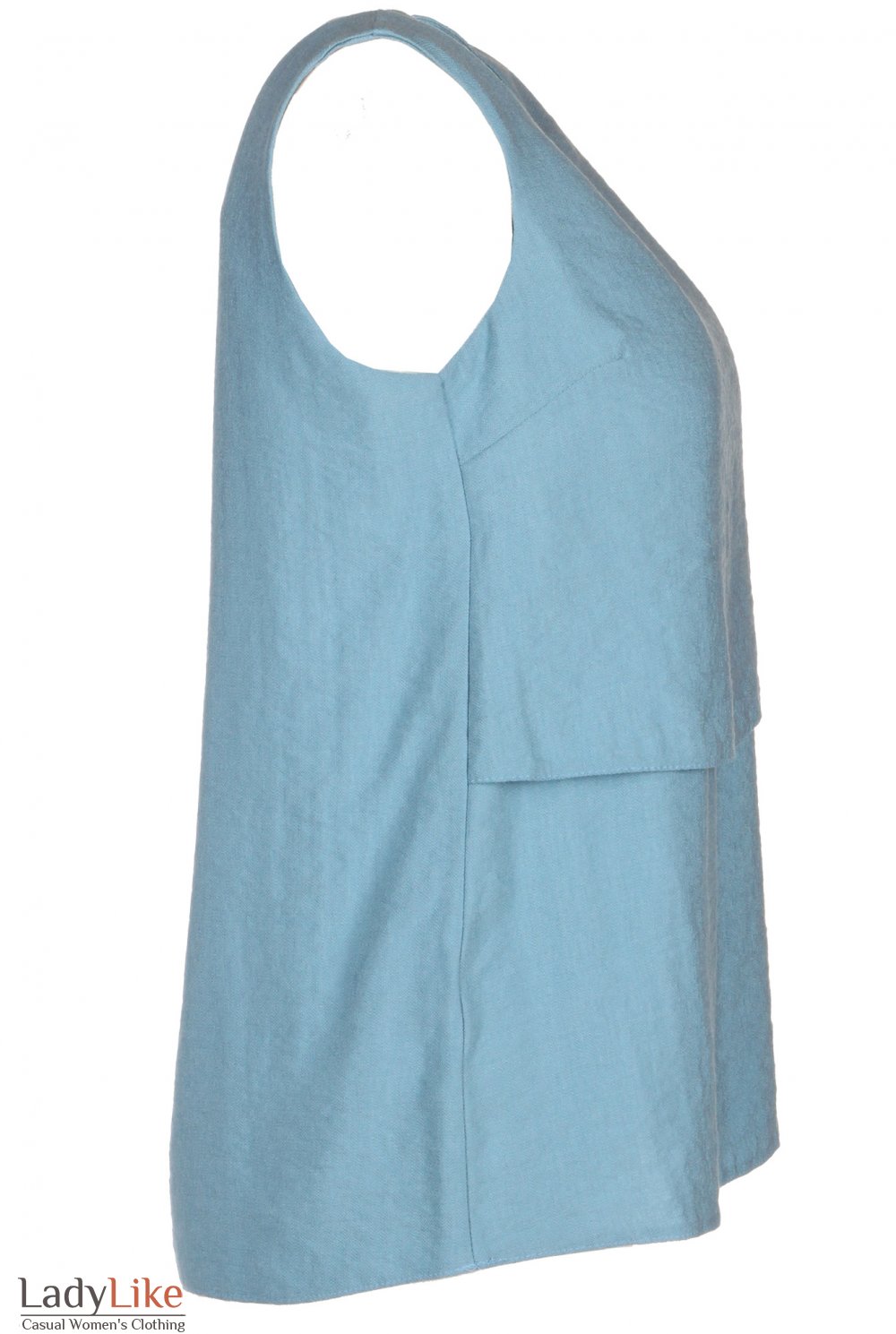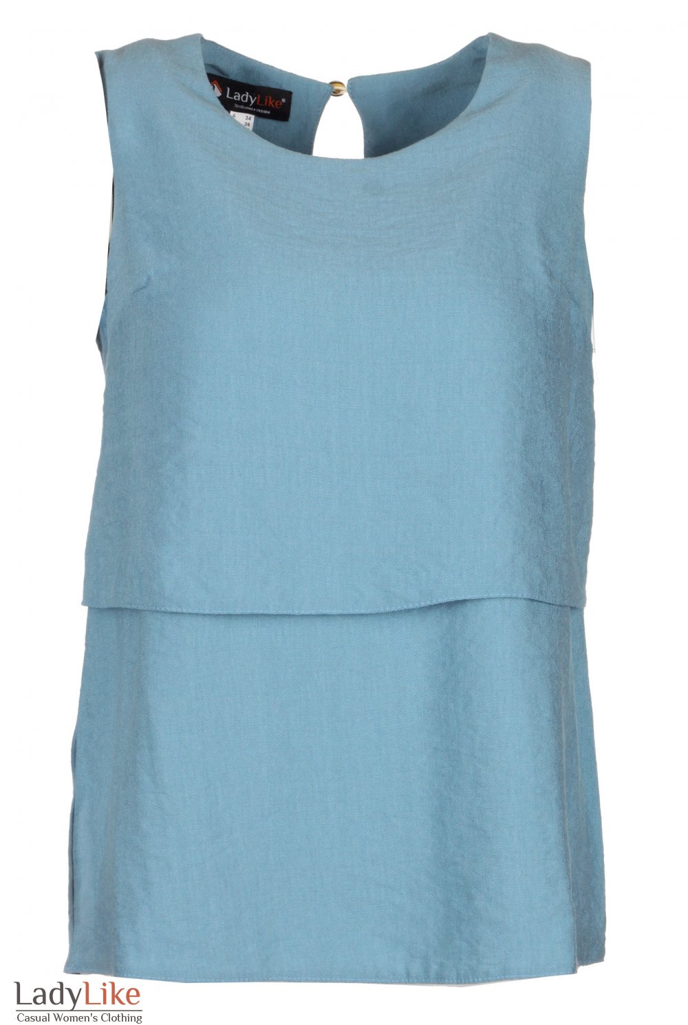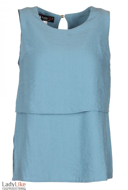 Летний льняной топ. Круглый вырез горловины. Двойной перед. Застежка на пуговицу по спинке.