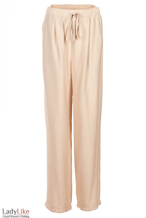 Брюки бежевые льняные на резинке