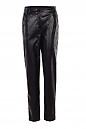 Брюки женские черного цвета из эко кожи, зауженные, застегиваються на молнию и пуговицу, по бокам карманы, сзади карманы-обманки, на поясе шлевки для ремня.
