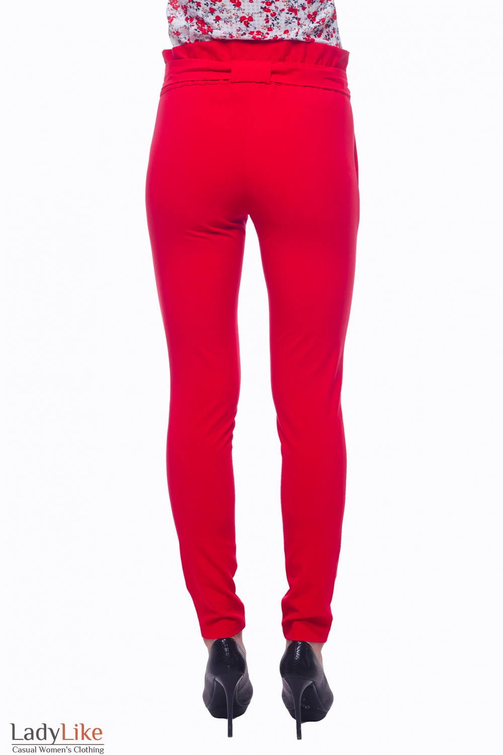 Женские брюки красного цвета с зауженными брючинами. Удобная высокая посадка в талии. Спереди по бокам 2 накладных кармана. Брюки на резинке, на поясе шлевки для ременя. В комплекте прилагается пояс из основной ткани. Длина по внутреннему (шаговому) шву 81 см