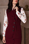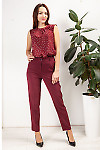 Стильный женский жилет в цвете марсал. Приталенный и удлиненный крой. Широкий шалевый воротник, застегивается по косой на четыре пуговицы. По бокам карманы-обманки. На подкладке. Длина ок. 65см. Юбка-трапеция, цвета марсал. Высокая талия, длина миди. По бокам накладные карманы. Застегивается впереди на пуговицы. Длина ок. 65 см. Классические женские брюки цвета марсал. Высокая посадка в талии, застегиваются на молнию и пуговицу. По бокам прорезные карманы. Брюки заужены к низу.