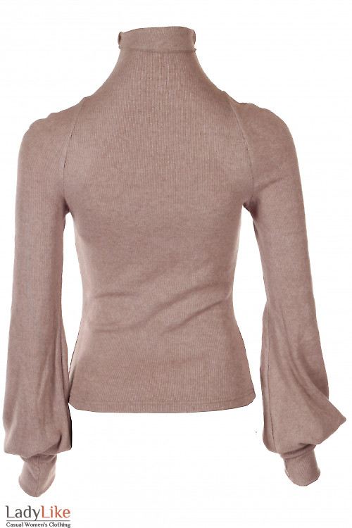 Светло-коричневый гольф с длинным рукавом и воротником стойкой. Сильно облегающий крой. Рукав с широкой манжетой. Длина ок. 62 см.