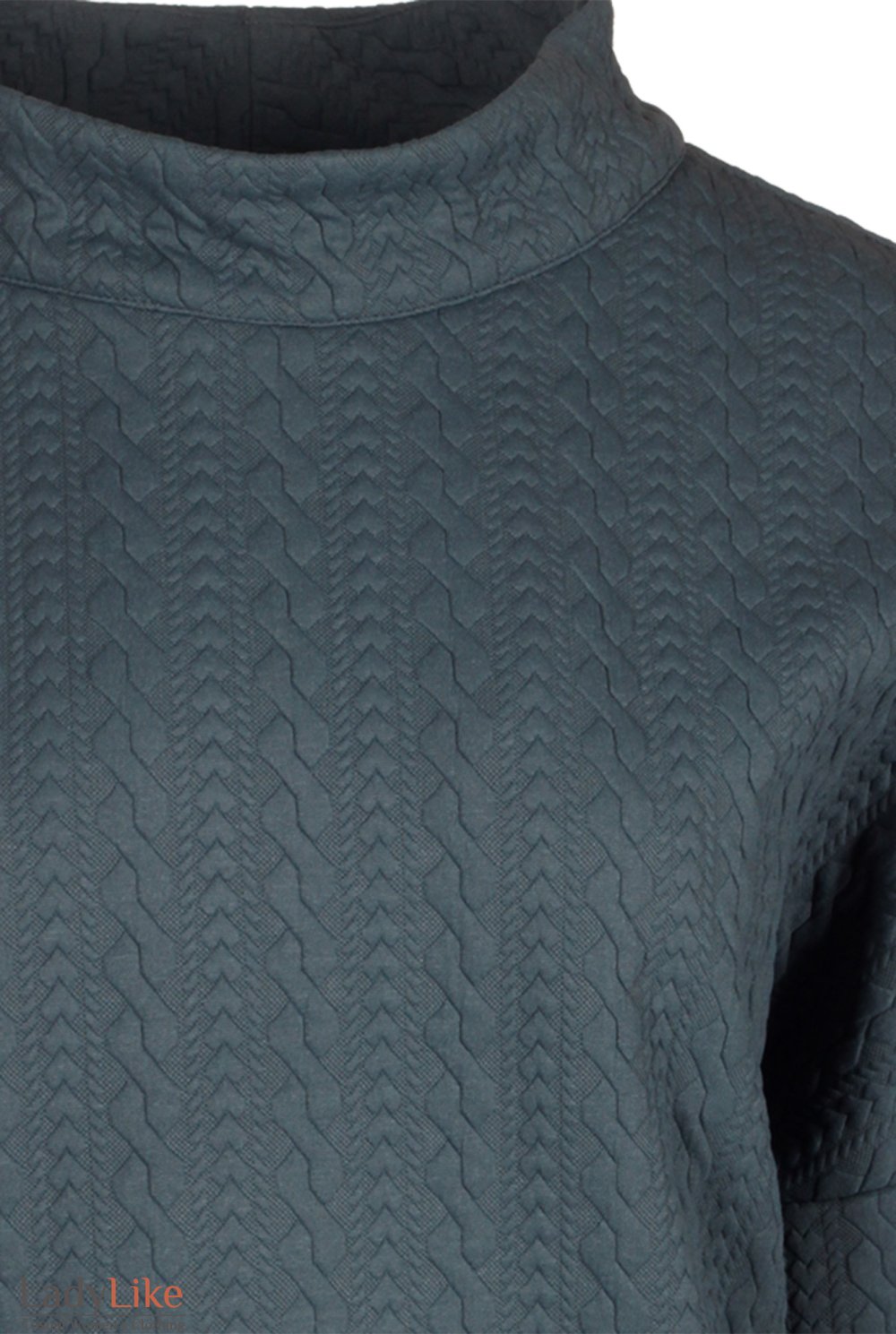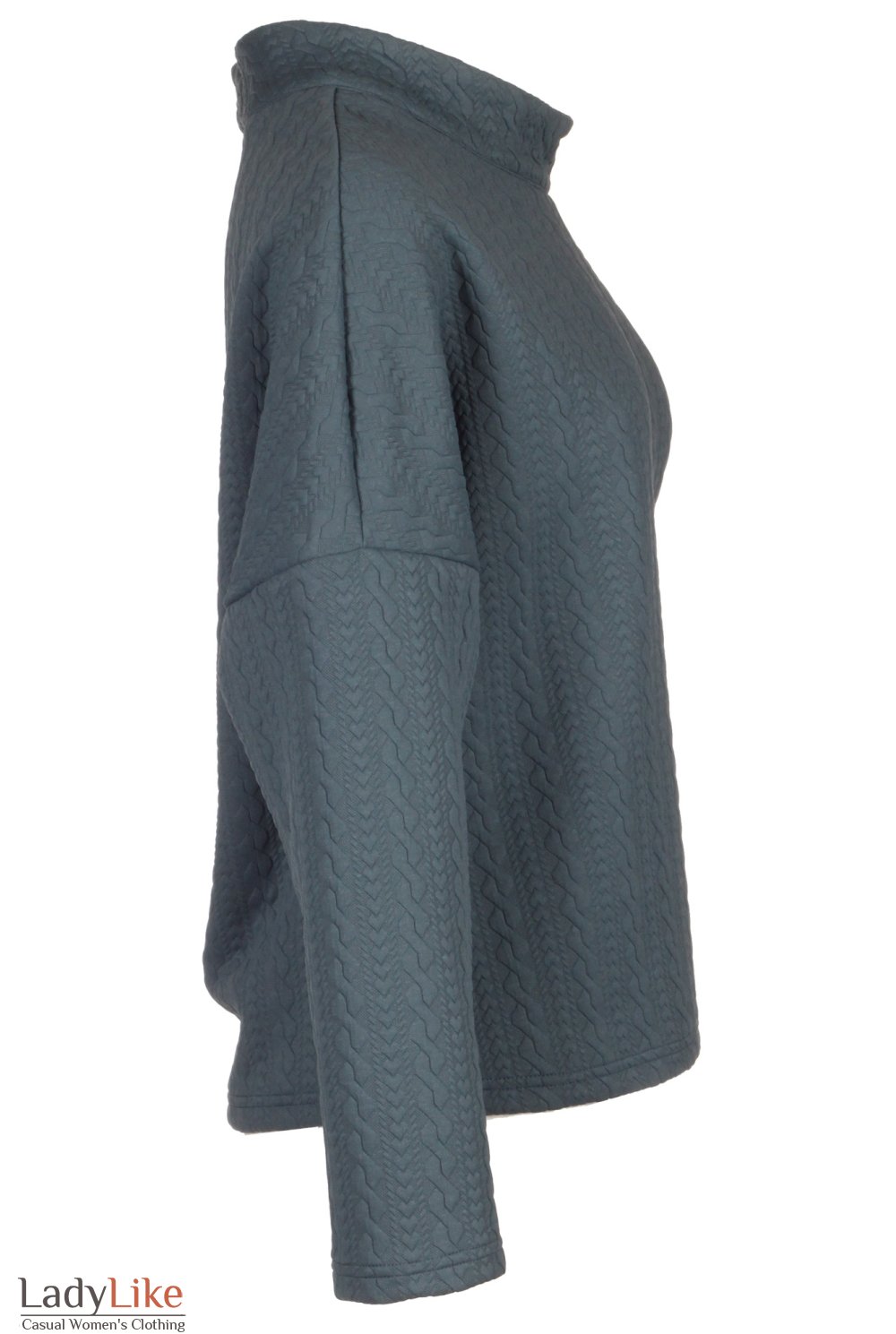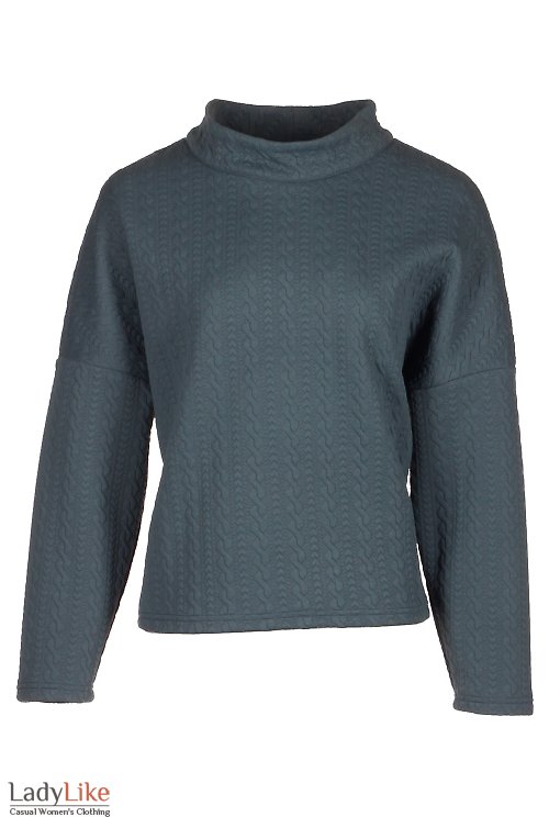 Джемпер теплый из трикотажа . Свободный силуэт. Рукав - летучая мышь. Широкий круглый вырез горловины с воротником-стойкой.