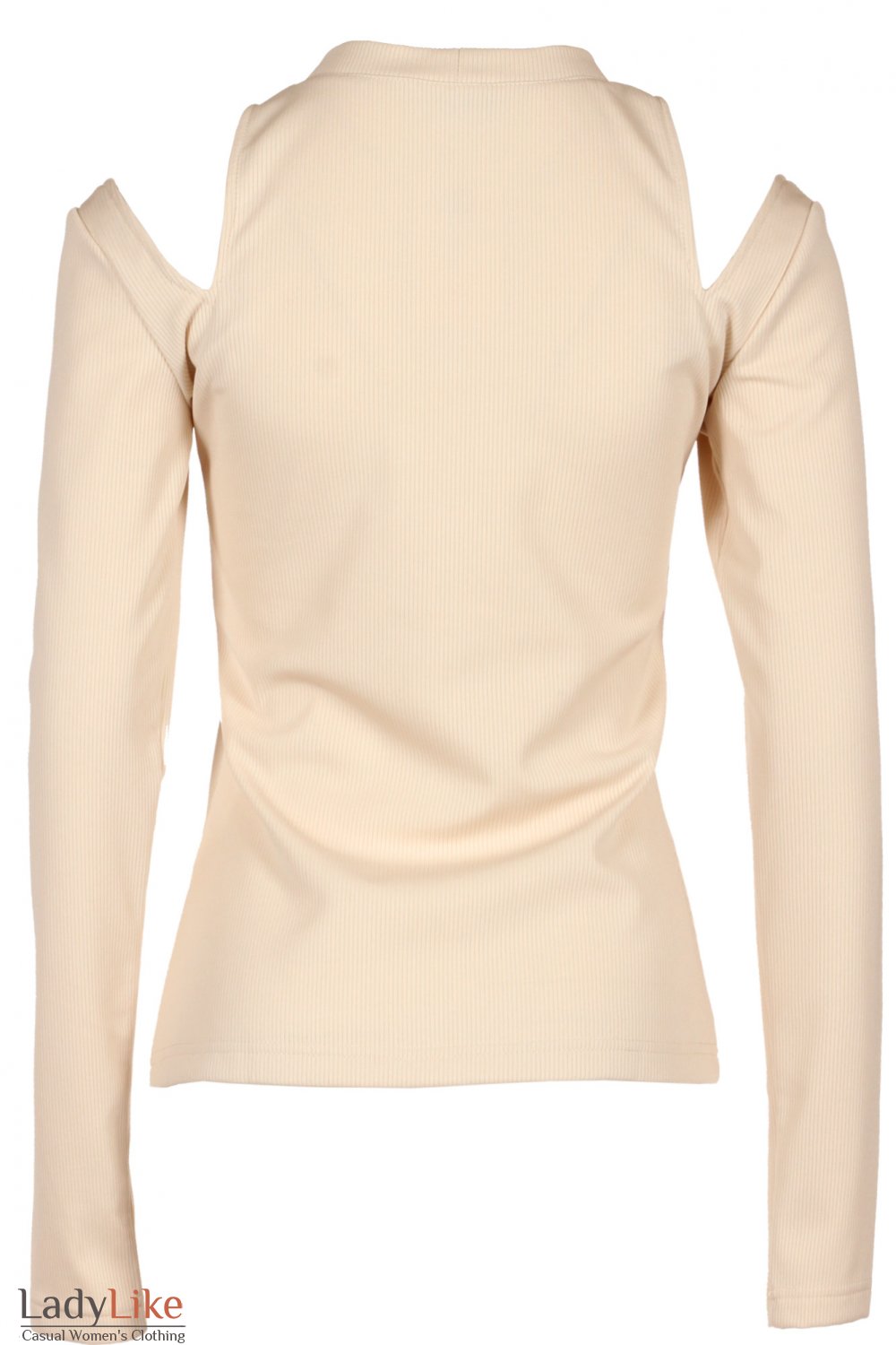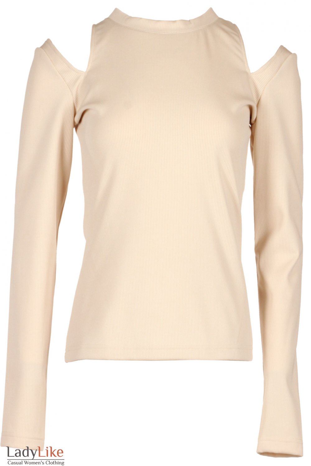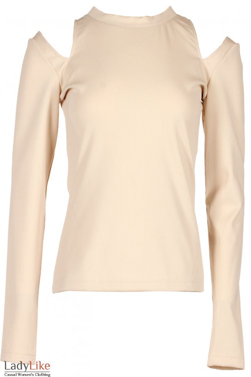 Стильный лонгслив молочного цвета с элегантными вырезами на плечах и длинными рукавами.