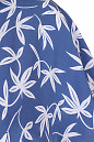 Платье с поясом синего цвета в белые листья. Цельнокроеные короткие спущенные рукава. Воротник отложной, V-образный вырез горловины. Отрезная талия, юбка пышная со складочками, по бокам карманы. Сбоку застегивается на молнию. Длина 113 см.