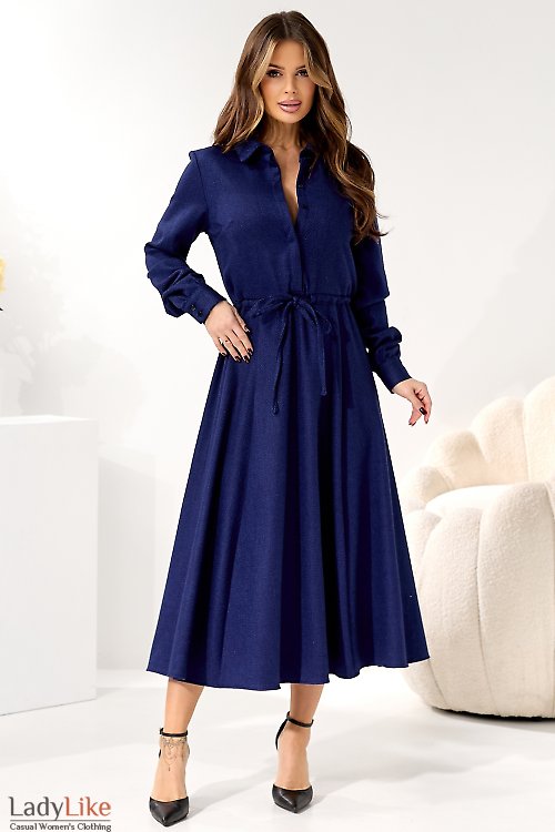 Платье синее на кулисе теплое миди