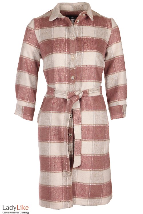 Стильное платье-рубашка в крупную клетку. Теплое зимнее платье. Свободный силуэт. Рукав три четверти. Боковые прорезные карманы. В комплекте идет пояс из основной ткани. Прекрасно подчеркивает талию.