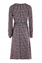 Теплое платье трапеция классического кроя. С приталенным верхом и юбкой-трапецией. В мелкую разноцветную гусиную лапку. Отрезная талия и круглый вырез горловины. Длинный и пышный рукав с манжетом. В комплекте пояс из основной ткани. Длина платья около 108 см.