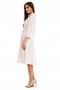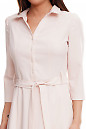 Платье бледно-розового цвета. Приталенный верх, пышная юбка-шестиклинка. Впереди платье украшено планкой с пуговицами. Рукав длиной в три четверти, воротник - стояче-отложной. Платье без подкладки, застегивается на молнию сбоку. В комплекте прилагается пояс из основной ткани. Длина ок. 107 см.