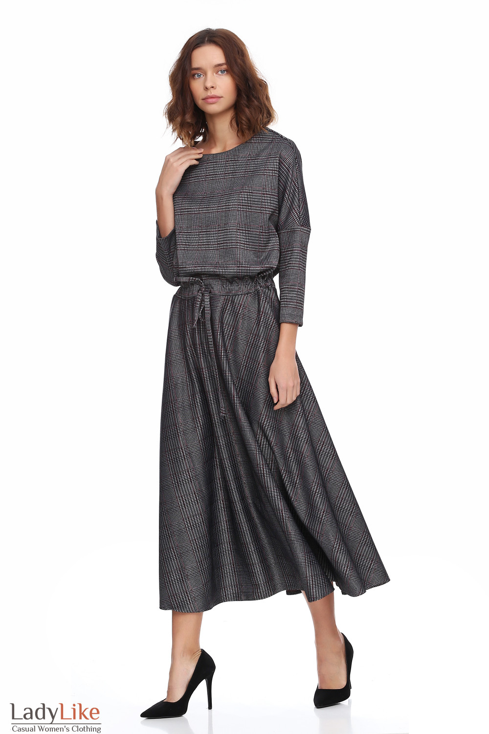 Платье миди в серую клетку
