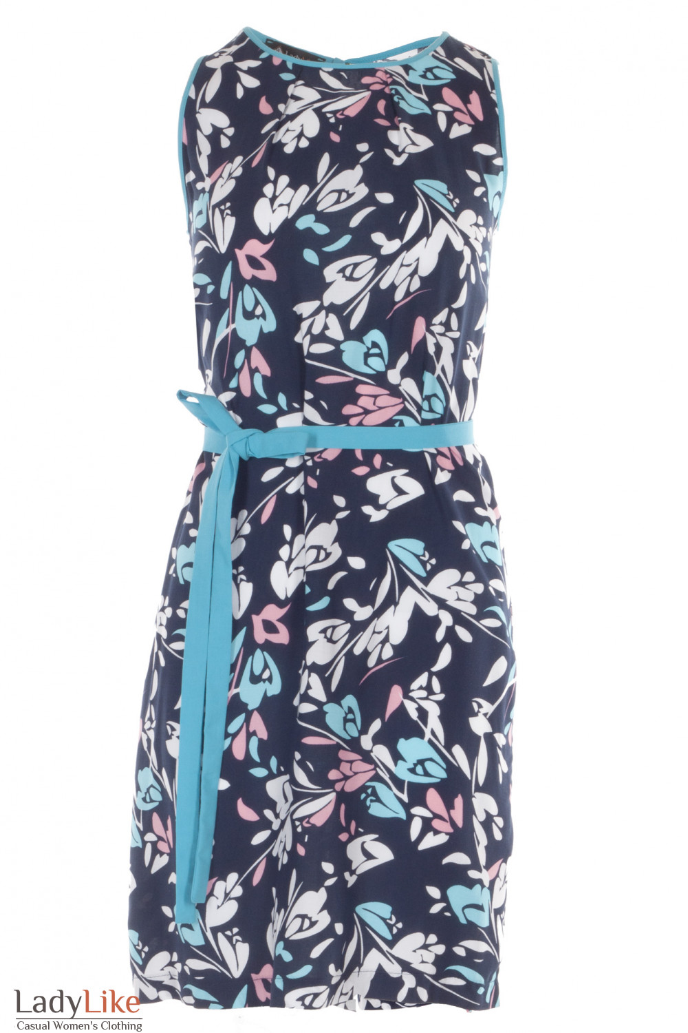 Платье темно-синее с рисунком из штапеля