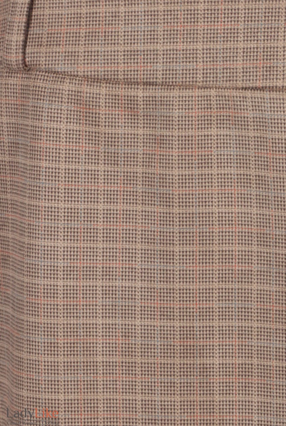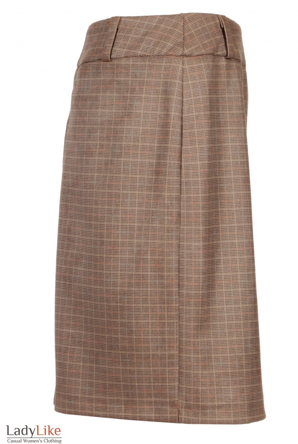 Юбка бежевая под замш. Приталенного силуэта. Широкий пояс со шлевками под ремень. Сзади застежка на молнию и разрез. Длина около 55 см.