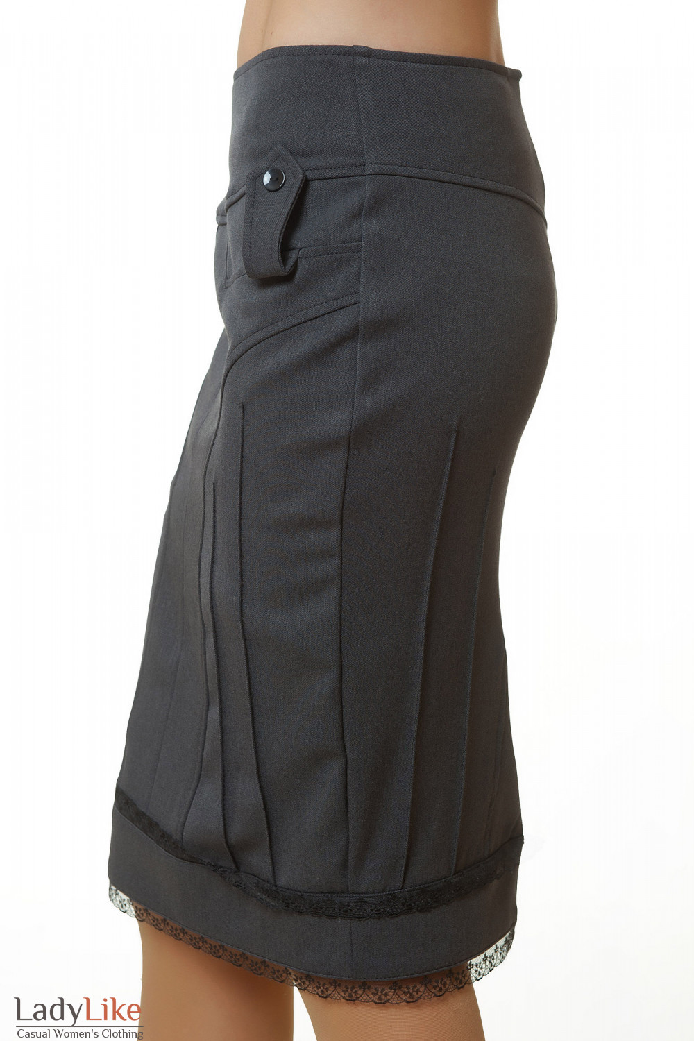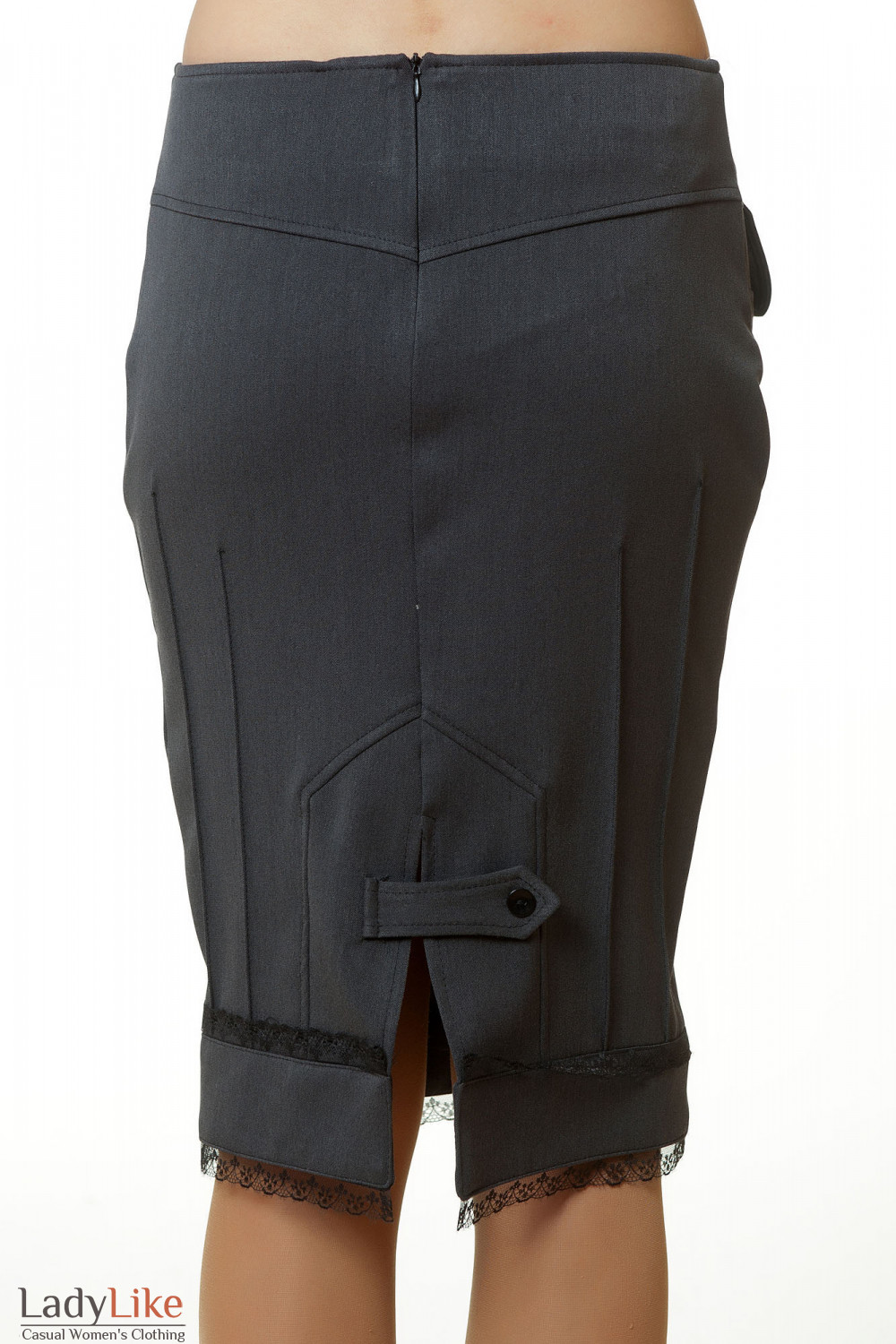 Серая юбка-карандаш с изысканным кружевом на манжете. Юбка застегивается на молнию сзади. Средняя посадка в талии, по бокам красивые рельефы. Длина ок. 55 см. Состав: 53% вискоза, 10% шерсть, 35% полиэстер, 2% эластан.