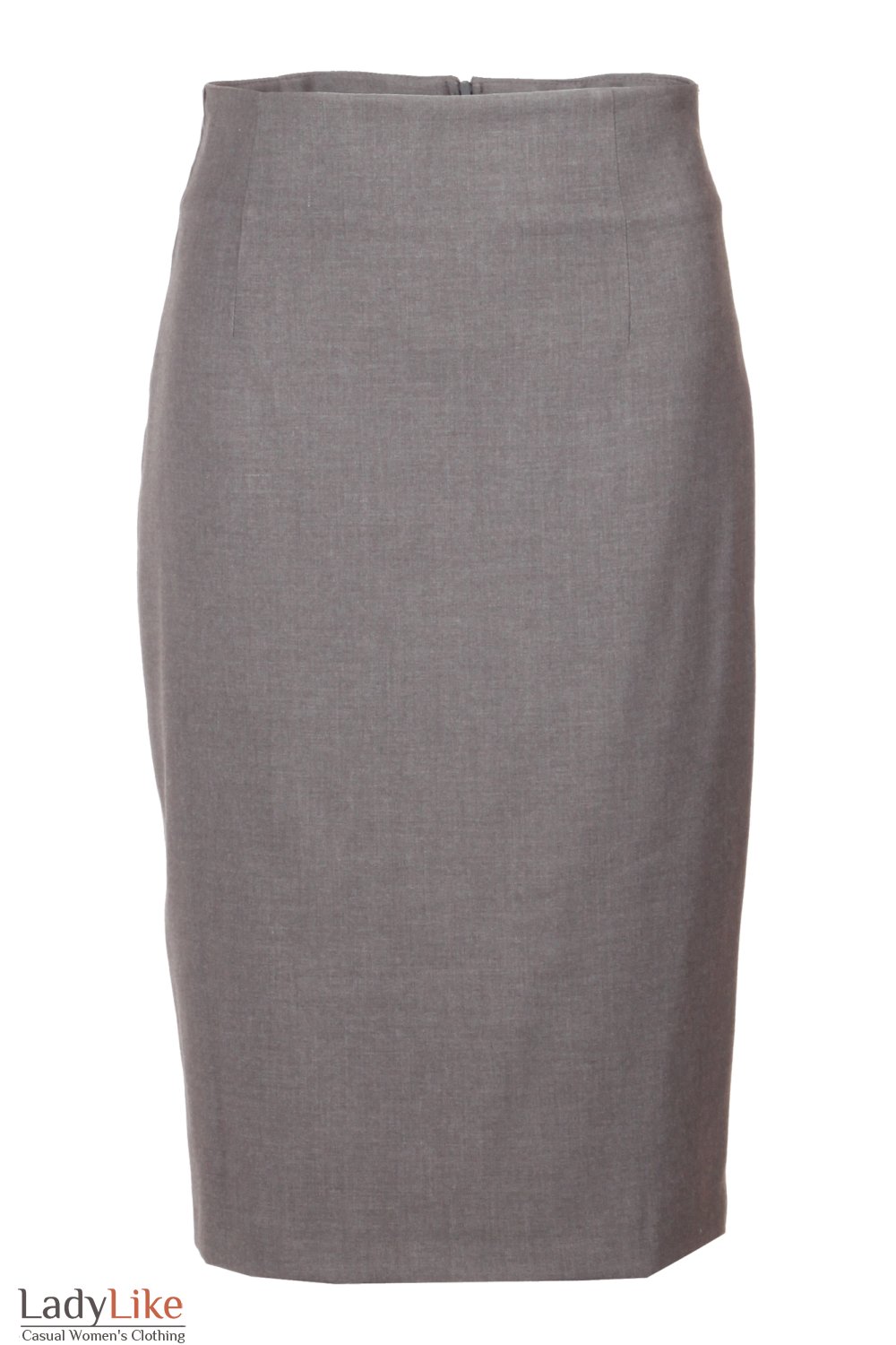 Юбка из костюмной ткани серого цвета. Прямого кроя, высокая посадка, в области талии впереди и сзади выточки. Юбка на подкладке, сзади застегивается на молнию. Длинна 60 см.
