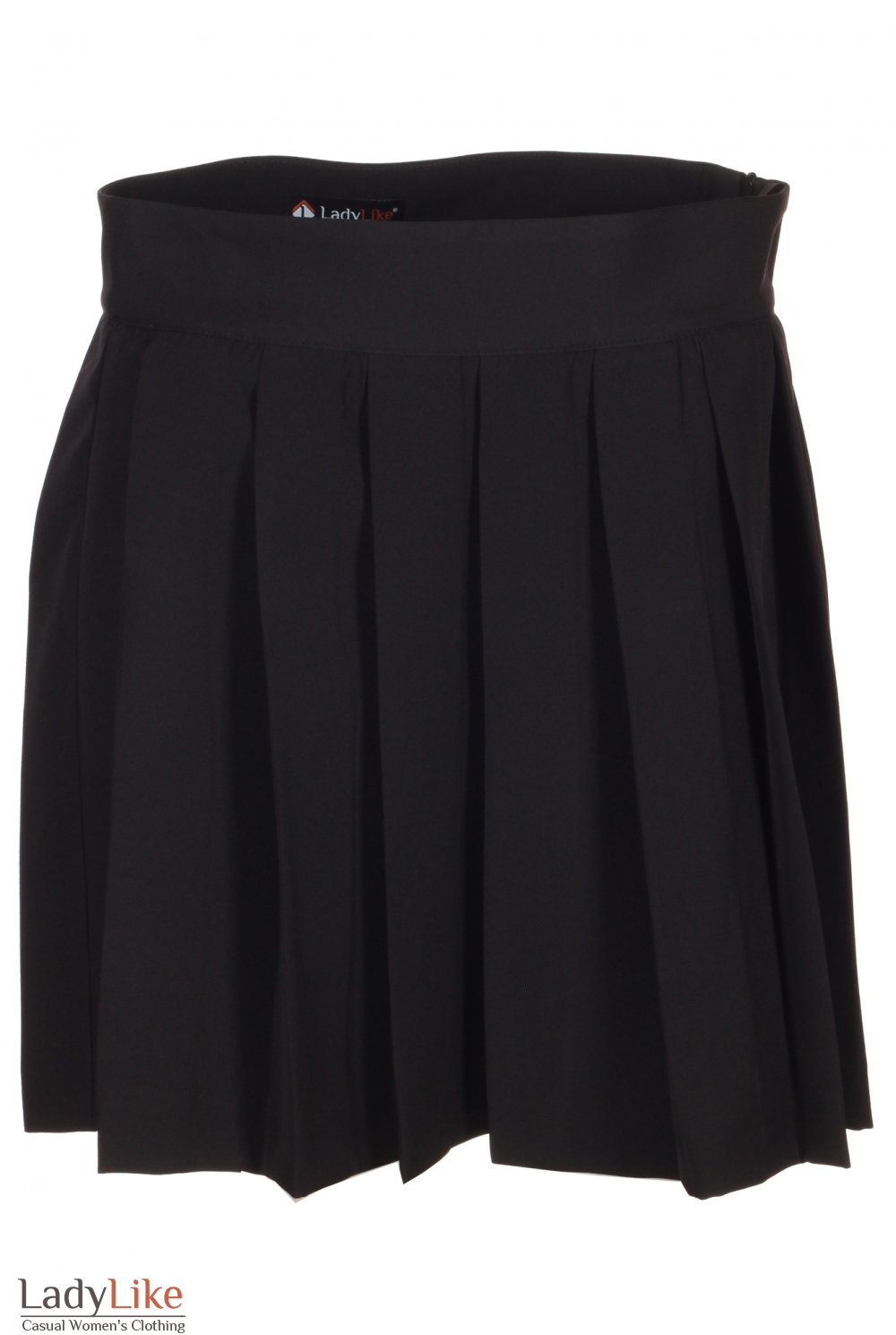 Черная юбка со складками. Широкий пояс.Застежка на молнию сбоку. Высокая посадка. Длина около 55 см.