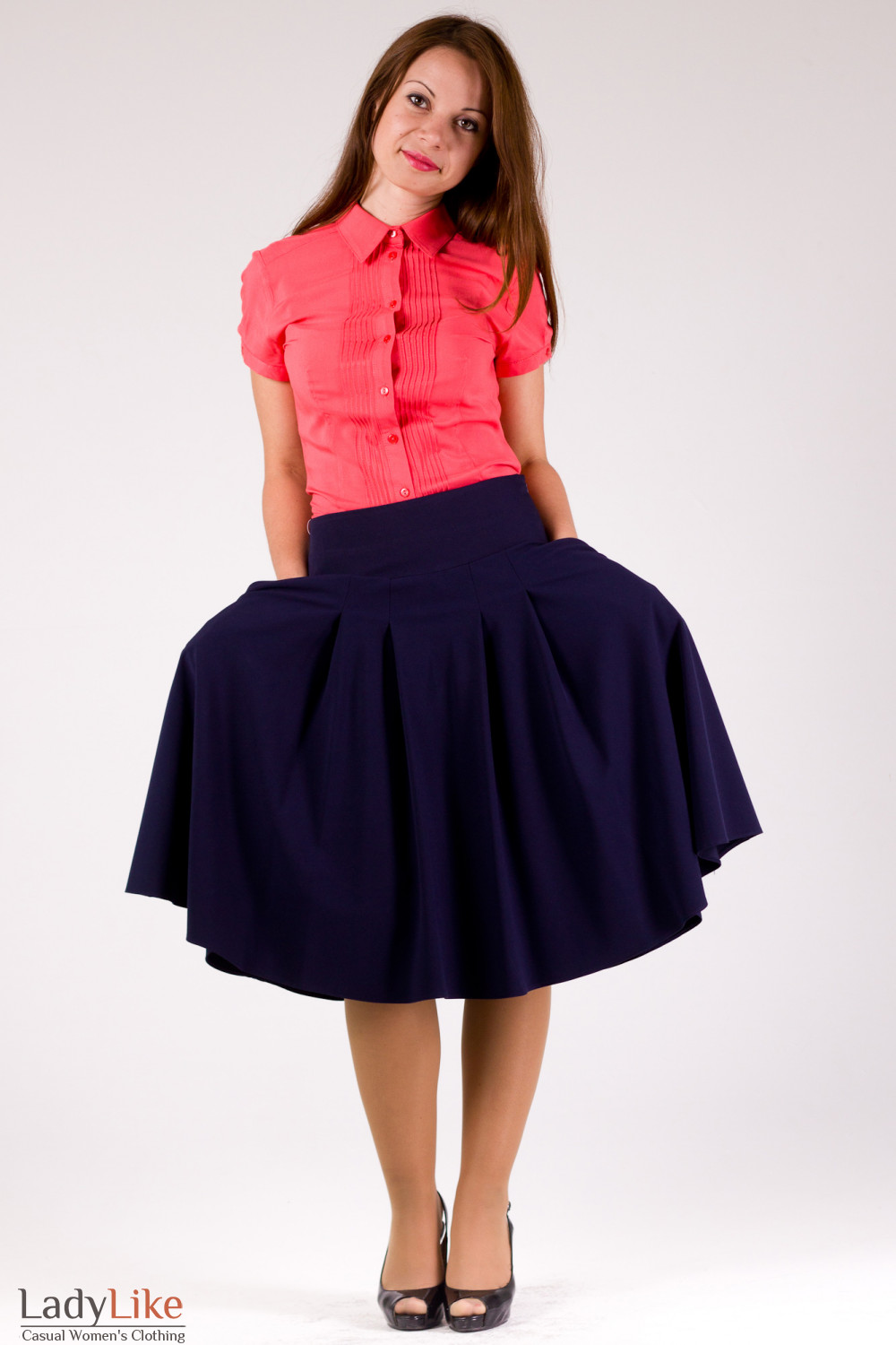 Юбка пышная с карманами синяя