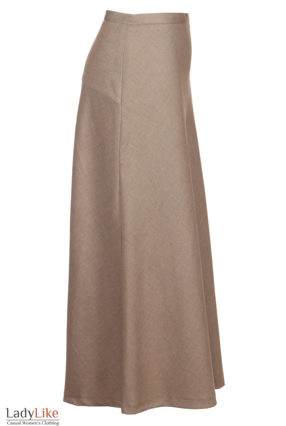 Теплая юбка-трапеция бежевая. Высокая посадка, сзади широкая фигурная кокетка. Застежка на молнию сбоку. На подкладке. Длина около 77 см.