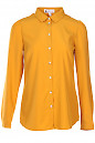 Блуза гірчичного кольору. Пряма, попереду застібається на гудзики. Комір стояче відкладний, рукава довгі з манжетом на один гудзик. Довжина 65 см.