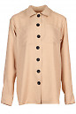 Сорочка простора лляна бежевого кольору. Пряма, попереду застібається на великі чорні гудзики. Комір відкладний, попереду накладні кишені. Рукава довгі з манжетом на два гудзики. Позаду кокетка та невелика складочка. Довжина блузки 74 см.