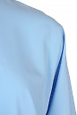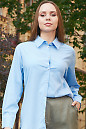 Подовжена жіноча сорочка блакитного кольору . Просторий та прямий крій у стилі оверсайз. Довгий рукав з манжетами на два гудзики. Спинка блузки прикрашена кокеткою та зустрічною складкою. Комір стояче-відкладний. Застібається попереду на гудзики.