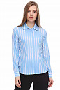 Класична жіноча сорочка блакитного кольору в білу смужку. Приталений крій, довгий рукав, застібається на гудзики. Довжина близько 60 см.