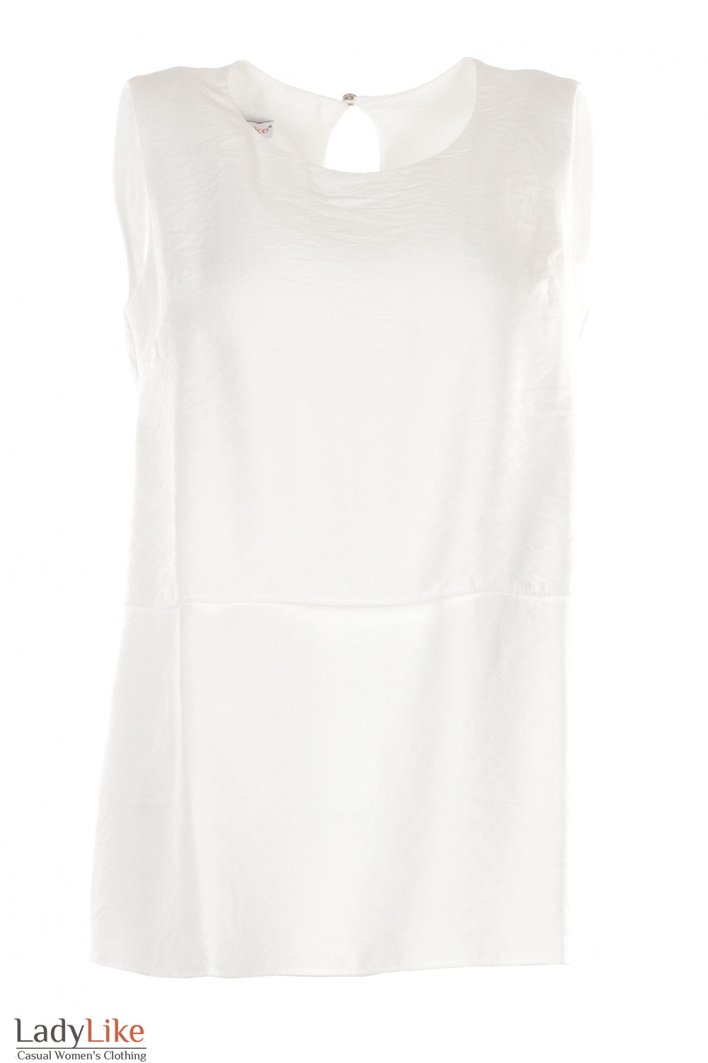 Топ білий з тонкого струмуючого льону. Круглий виріз горловини, застібається ззаду на гудзик. Перед топа виконаний в два шари.