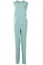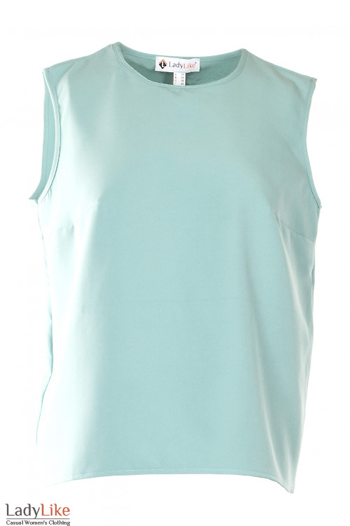 Топ із костюмної тканини, бірюзового кольору. Прямого крою, кругла горловина. Пройма з горловиною оброблені обтачкою з основної тканини.