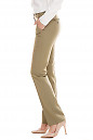 Жіночі оливкові брюки класичного крою. Зручна середня посадка, пояс з петлями для ременя. Спереду 2 прорізні кишені-хулігана, ззаду дві звичайні. Прямий крій брючин, відпрасовані складки-стрілки, довжина по внутрішньому шву 82 см.