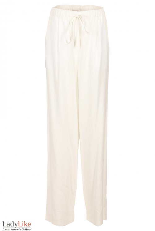 Брюки літні з натуральної тканини. Брюки широкі на резинці з кулісою. Висока посадка. Для зручності бокові кишені.
