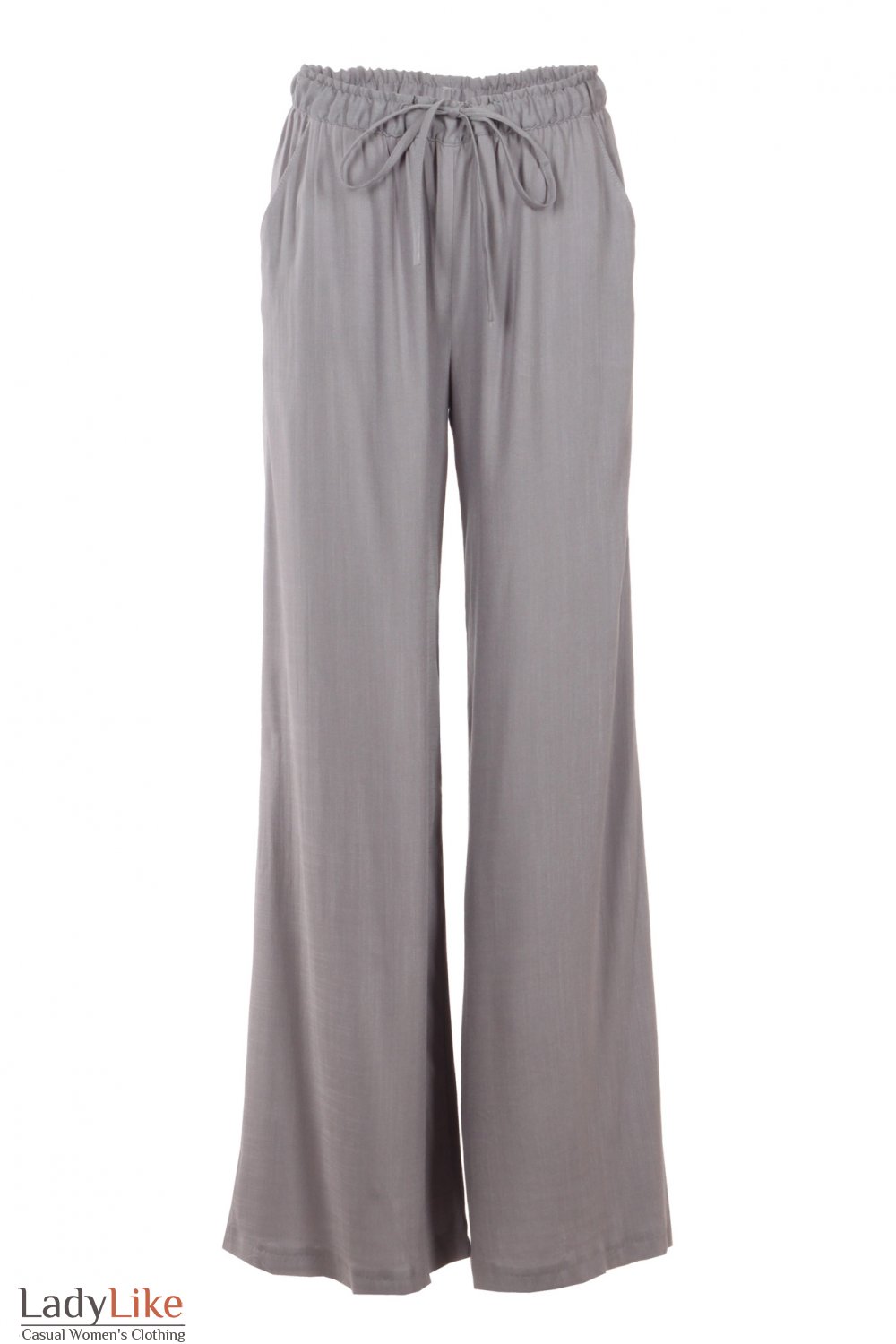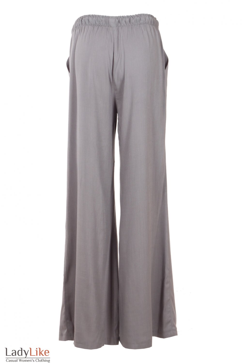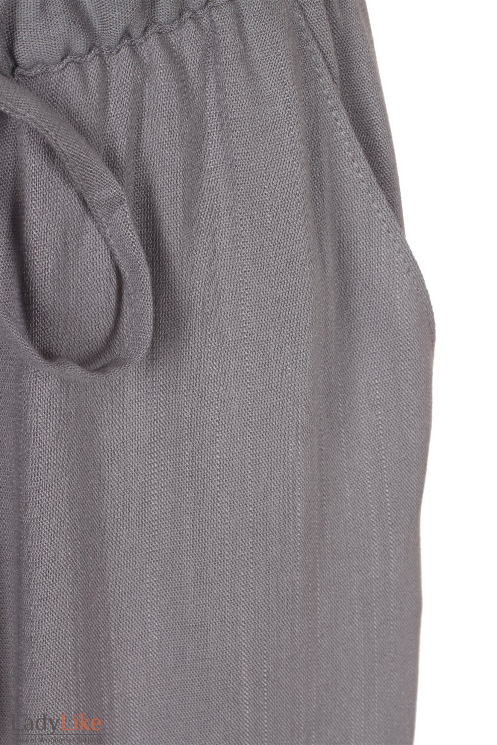 Штани лляні сірого кольору. Прямого крою, донизу розкльошені, на поясі вставлена ​​гумка з кулісою. З боків кишені. Довжина 106 см.
