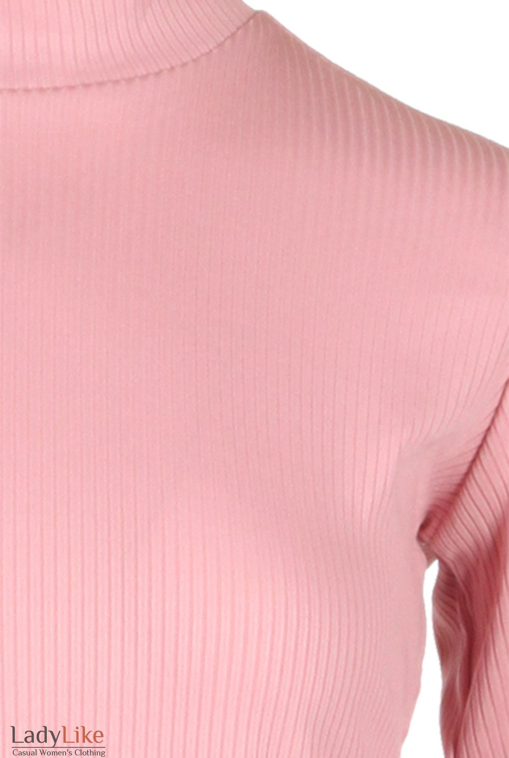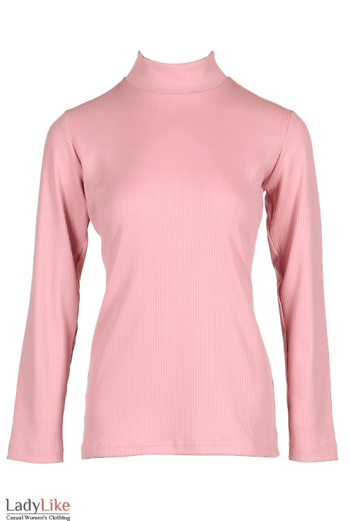 Трикотажний гольф. Ніжного рожевого кольору. Приталенний силует. Комір - стійка. Довжина близько 62 см.