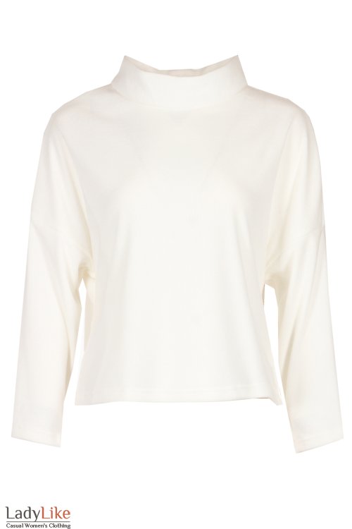 Кофта тепла, трикотаж у рубчик, білого кольору. Пряма широка, круглий виріз горловини з невисокою стійкою. Рукави спущені довгі. Довжина 57 см.