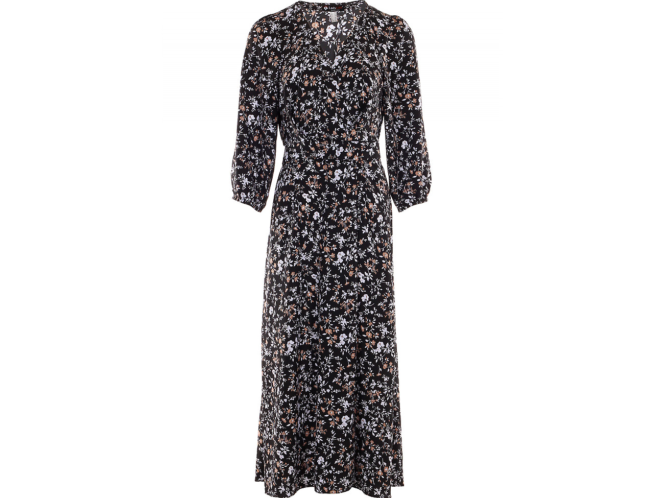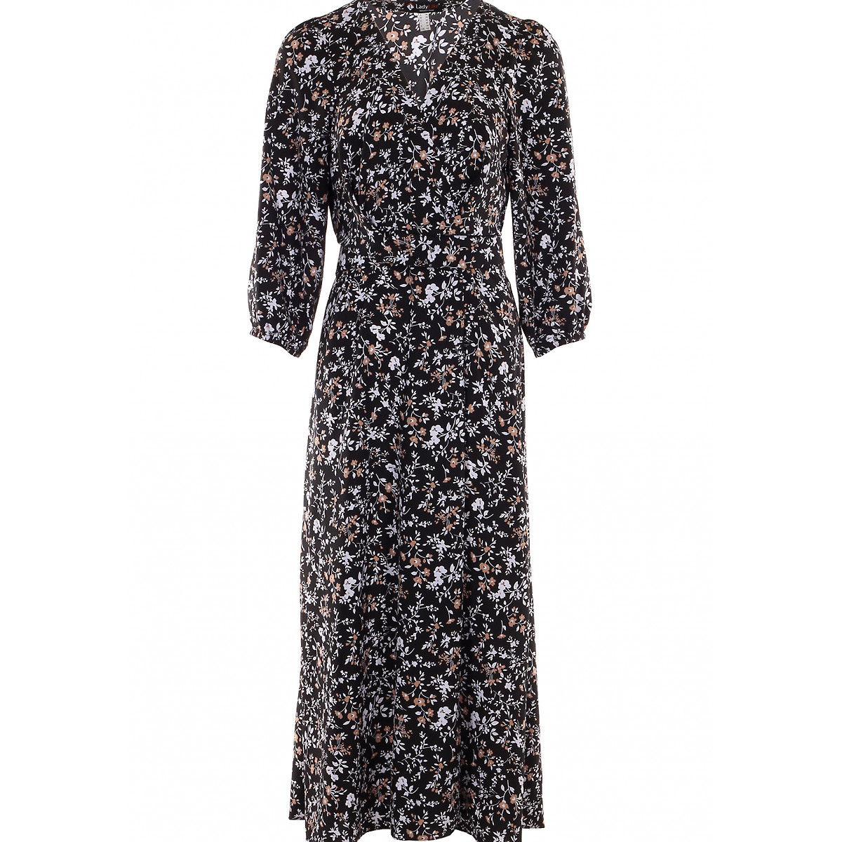 Легка сукня з віскози. V-подібний виріз горловини з декоративними зав'язками під грудьми. Блискавка по спинці. Рукав пишний, довжиною три чверті.