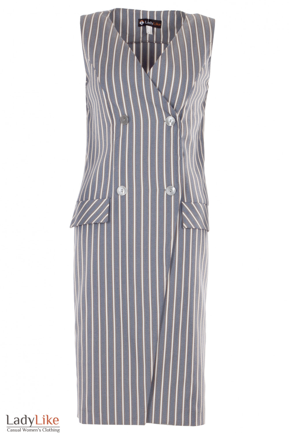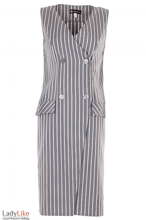 Сукня без рукавів на запах. приталений силует. Двубортна застібка. По бокам декоративні клапани. Без підкладки.