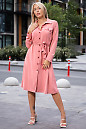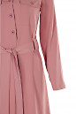 Сукня-сорочка рожевого кольору. Вільний А-силует. Застібається на гудзики з петлями по всій довжині. В комплекті пояс із основної тканини. Рукав довгий.