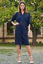 Сукня синя, вільного крою. Прикрашає сукню пояс із пряжкою та накладною кишенею з одного боку. На руках пати, за допомогою яких виконується обробка рукавів.
