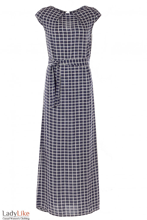 Легка сукня з бавовни. Короткий рукав. Защіпи по горловині. В комплекті пояс з основної тканини. Застібка по спинці по горловині на гудзик та повітряну петлю. Збоку високий розріз. Довжина 170 см.