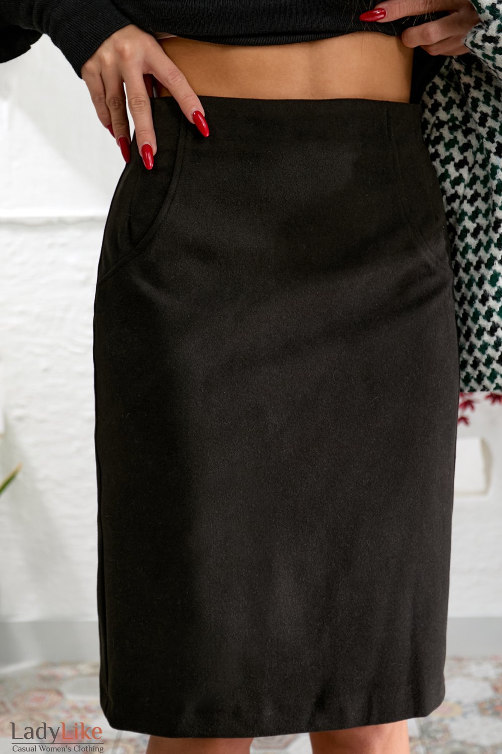 Тепла жіноча спідниця чорного кольору. Фасон - класичний олівець. Спідниця на трикотажній підкладці. Висока посадка дозволяє вигідно підкреслити талію.