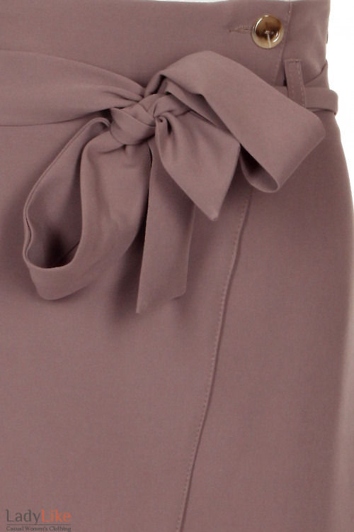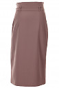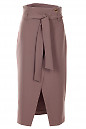 Спідниця на запах з засточеним розрізом. Збоку блискавка. Висока посадка. Довжина міді. Спідниця з поясом.
