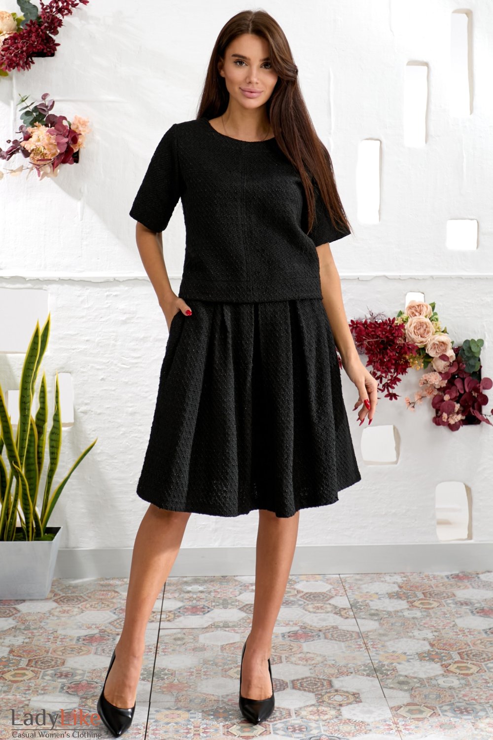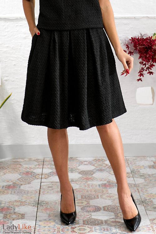 Спідниця чорна пишна з бантовими складками, довжина міді. Застібається на блискавку