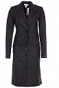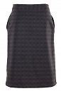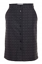 Спідниця тепла темно-сіра у світло-сіру клітку. Пряма, попереду застібається на гудзики. З боків накладні кишені.