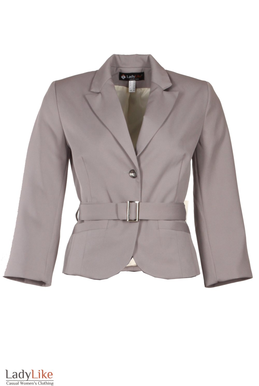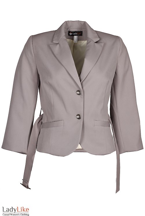 Жакет сірий 3/4 рукав з поясом